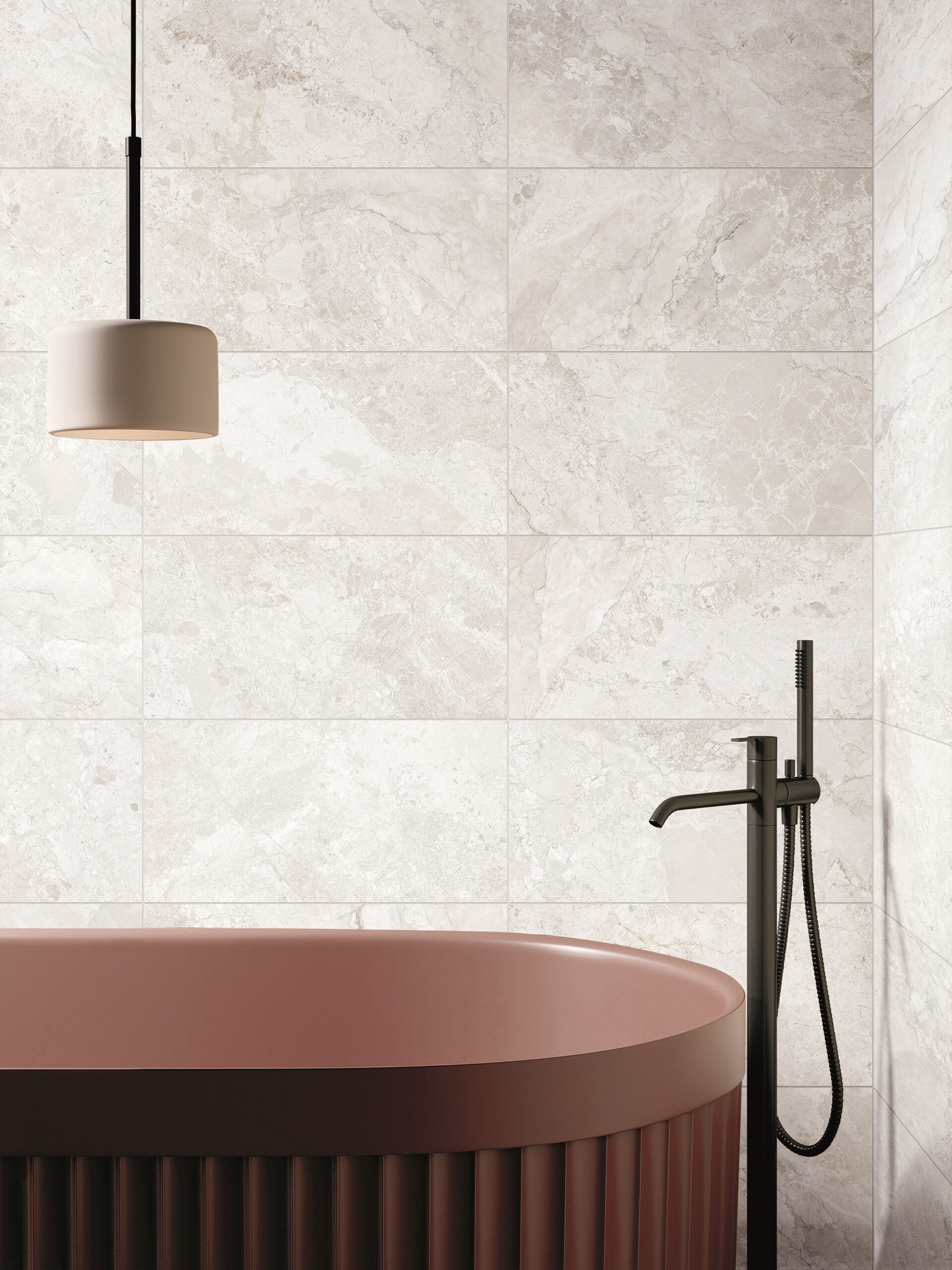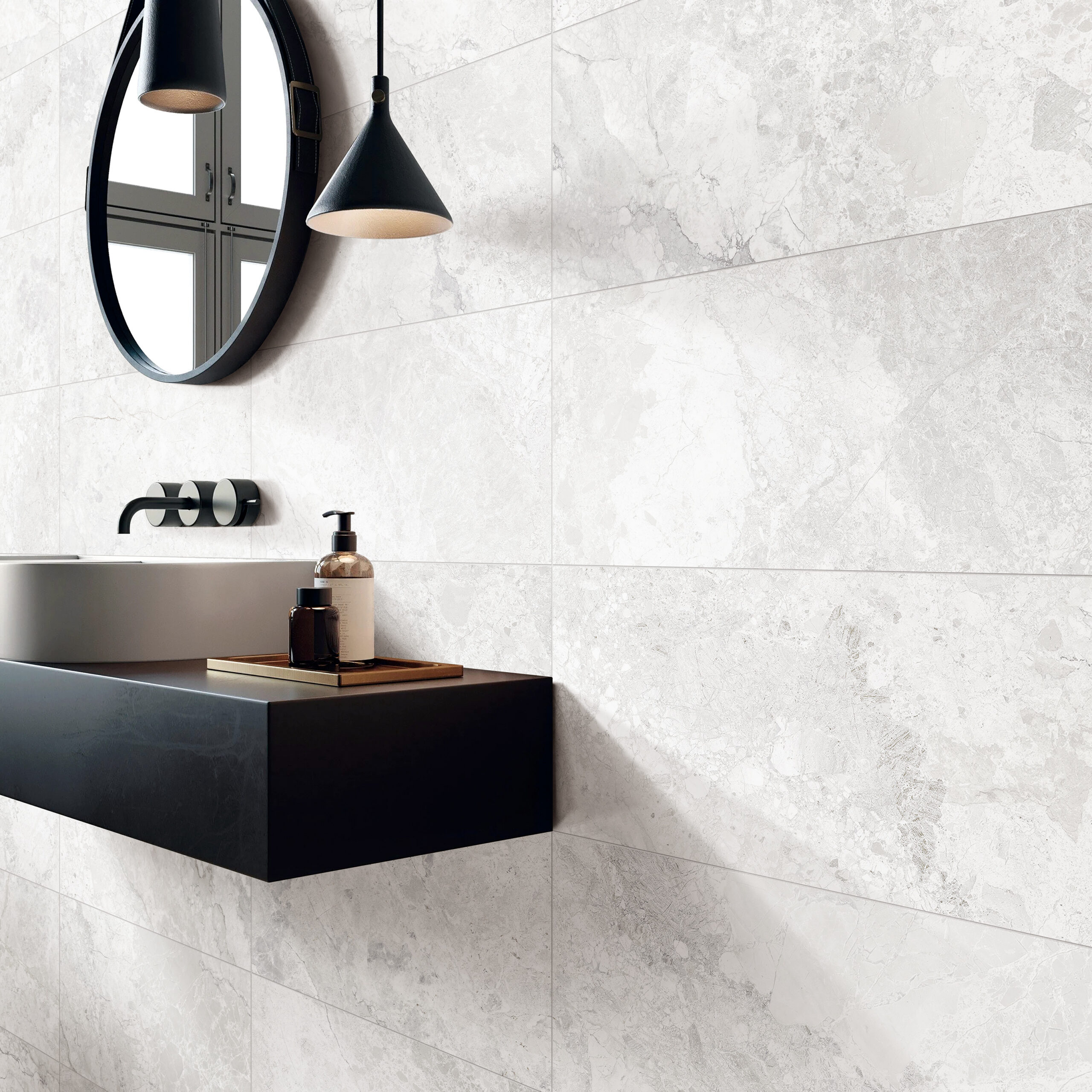 Marbella porcelain tiles present a refined stone aesthetic, defined by soft tonal variation, subtle surface movement and a balanced, contemporary palette.