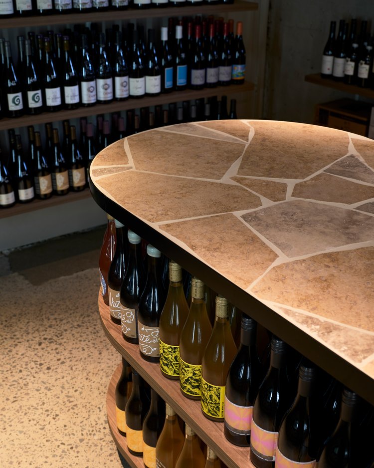 Lamond Projects selected a crazy paving blend of Silver Ash, Classic and Noce Travertine to define the tone for this Spanish-style wine bar in Redfern, and the result is both grounded and atmospheric.