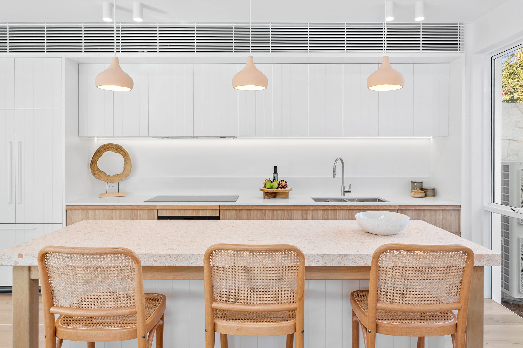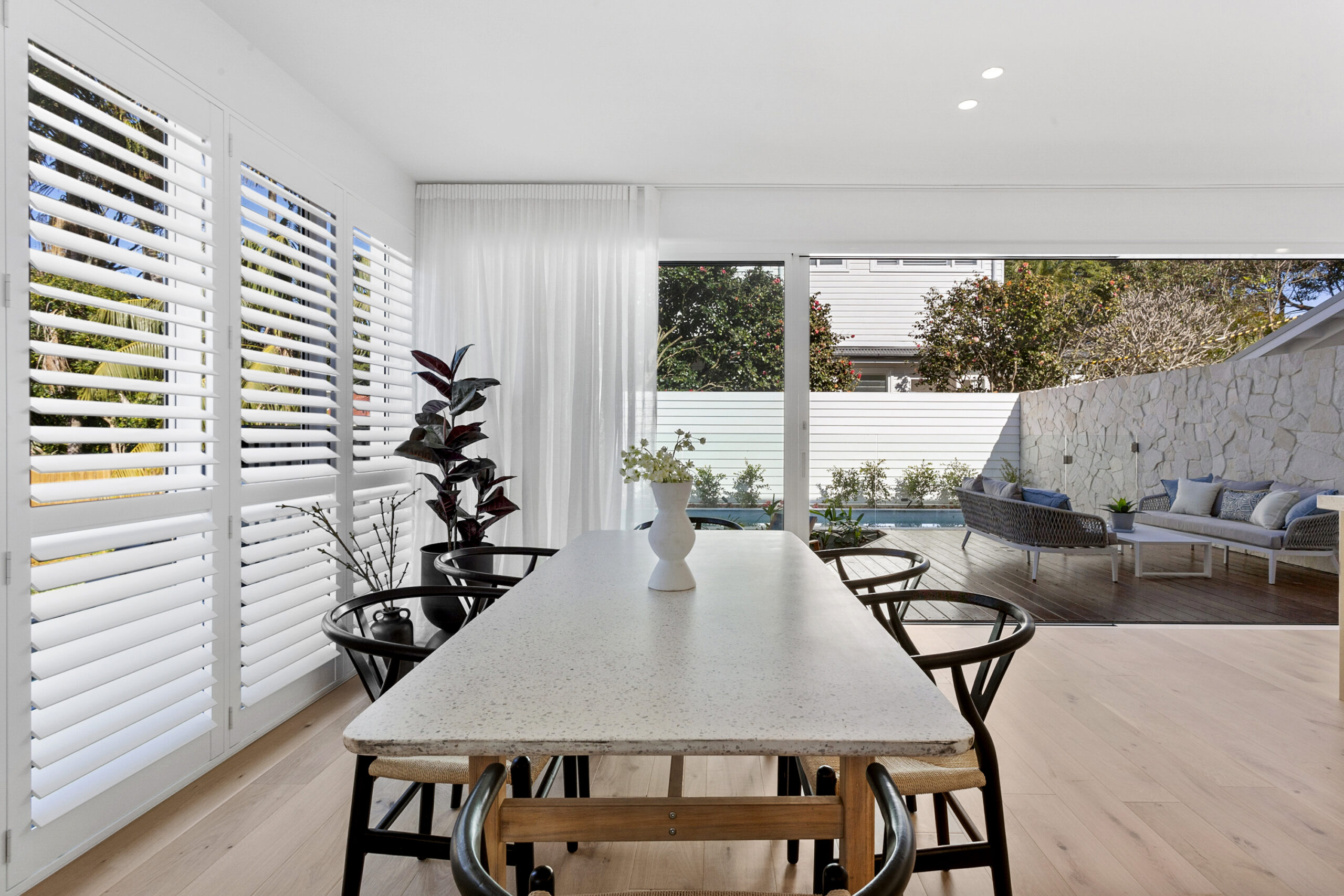 Through a friend of ours, we came across an interior designer, and a beautiful outdoor material, the Cathedral Limestone, which we just fell in love with. We worked closely with Peta Daniel, Interior Designer from Daniel Baker Design, based in Sydney.  Which was wonderful, Peta just got us and what we were wanting to achieve in our home and helped us to make it a reality, in the selection of materials and finishes.