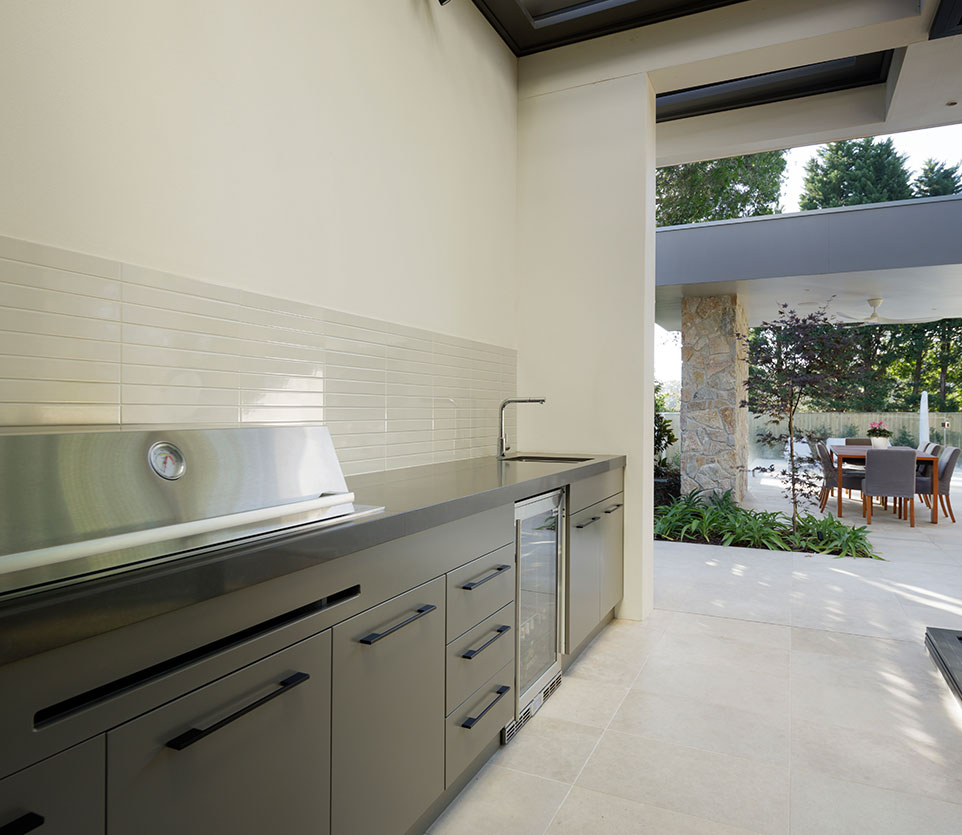 Our Lavarosa Alfresco Limestone and Summit Wall Cladding contribute to a contemporary design and connect the indoor and outdoor areas of the house.