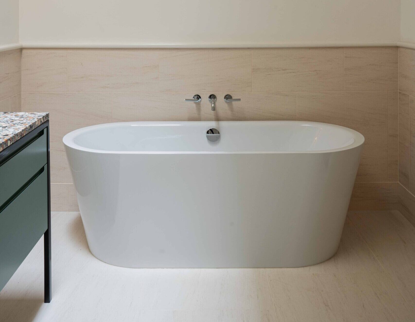 - Bathrooms, where its natural softness supports calm, considered interiors