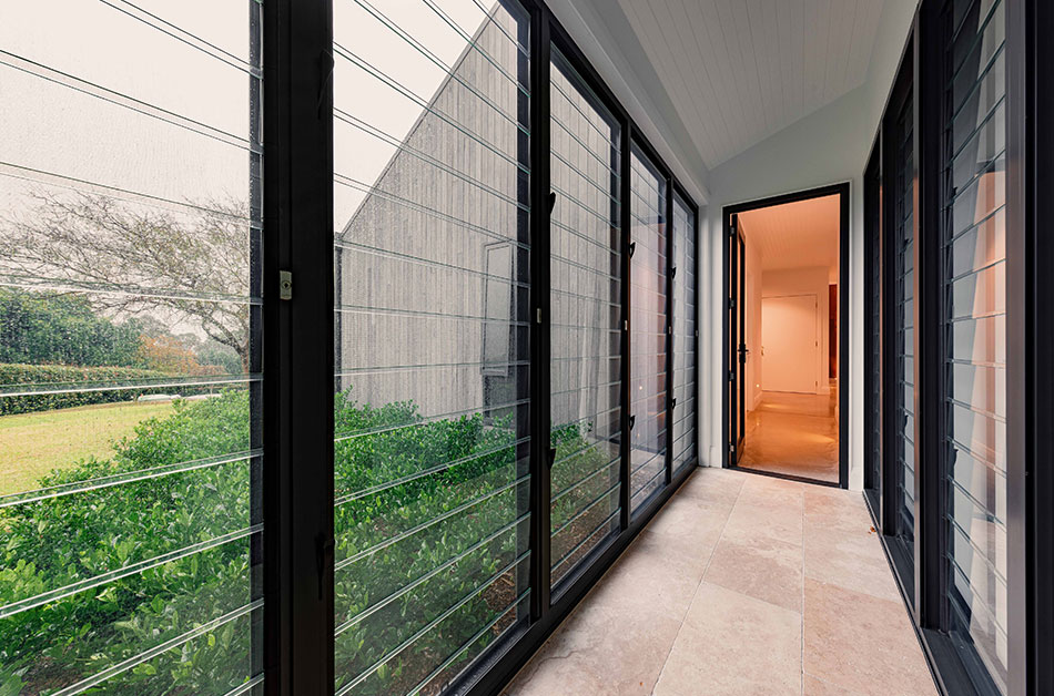 In order to balance the dark colours within the interiors and offset the dark finishes, we brought in a lot of glass which allows you to take in the surrounding views of the property as well as ultimately brings in a lot of light to flow through the home.