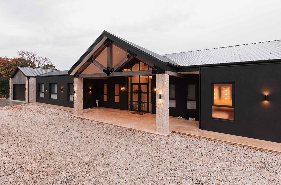 It is a modern construction tying in the elements, with timber and stone being an acreage property blending in with the surroundings and creating a homely feel, even though most of the project is contemporary Scandinavian.