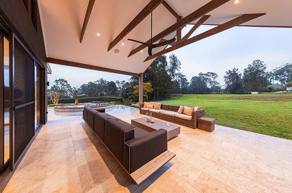 Our First Choice Classic Tumbled Travertine was selected for the alfresco area, providing a similar lightness and contemporary atmosphere to the design.