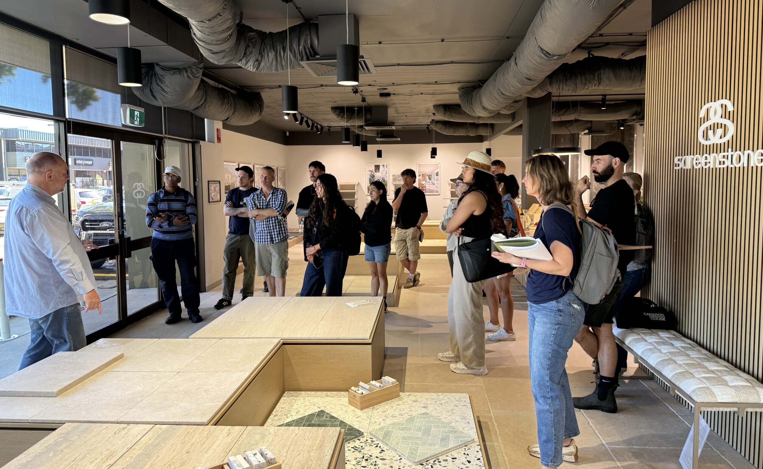 In November, Claudia Crawley, owner of Grindstone Landscapes and Ryde TAFE lecturer, brought her Diploma of Landscape Design students for an excursion. In their final term, the students joined Gary Bazzana for an in-depth exploration of natural stone selection, finishes, formats and installation considerations.