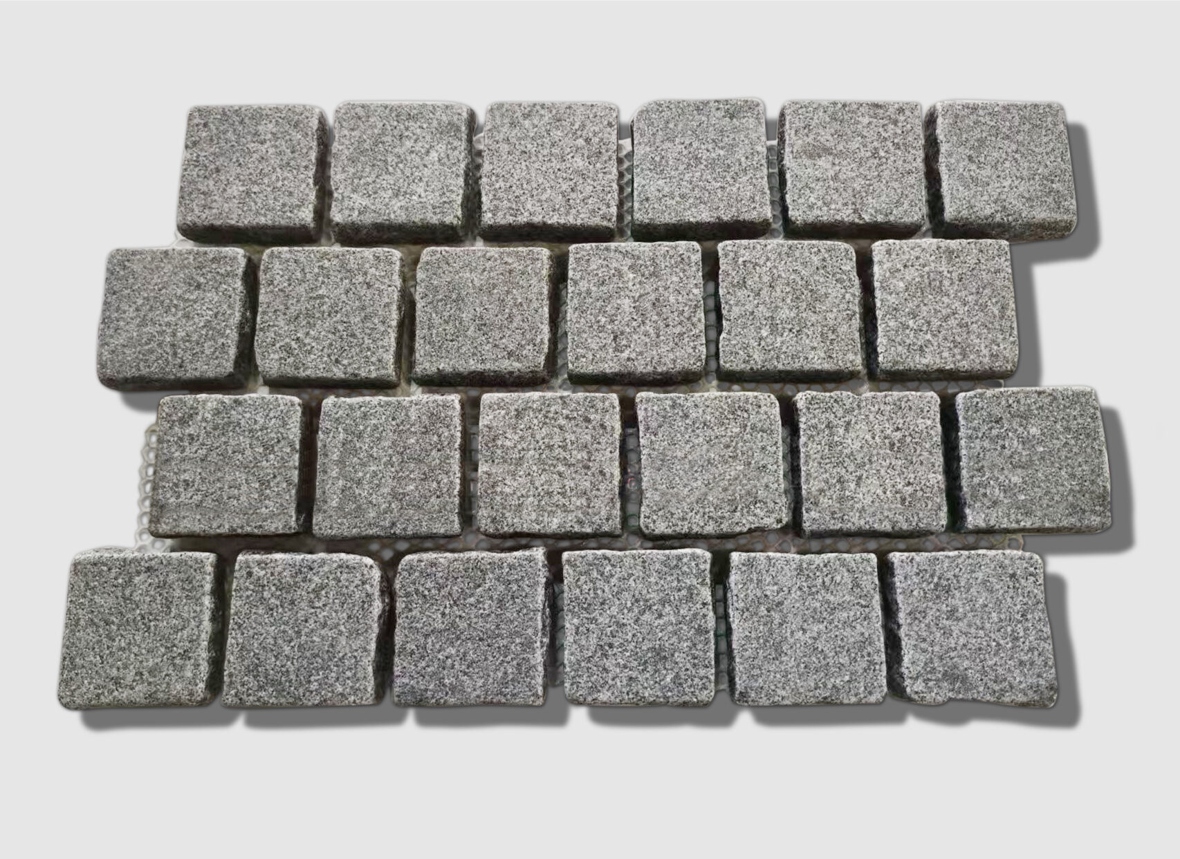 Crafted from dense mid-grey granite, Silhouette Tumbled Cobblestones feature a softly weathered, flamed and tumbled finish with P5 slip resistance. Mounted on mesh sheets in a brick bond pattern for efficient installation, the 90×90×30mm format is ideal for driveways, pathways, courtyards and high-traffic outdoor environments.