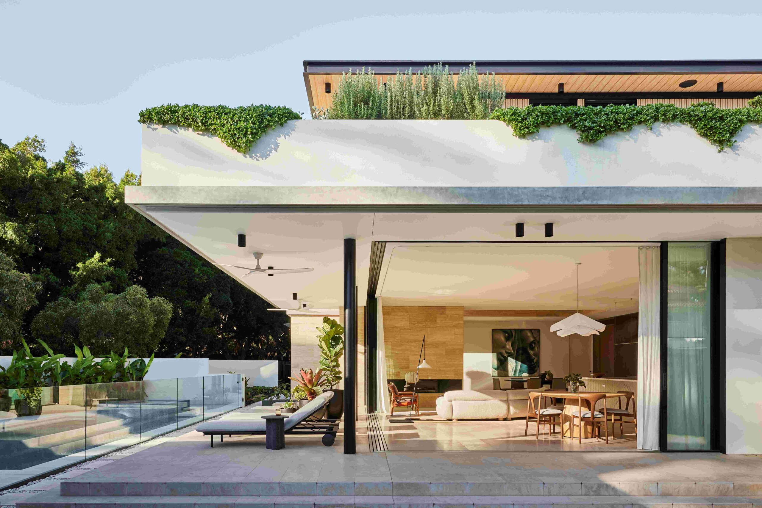 Featured in Inside Out magazine, this Canberra home blends mid-century warmth with contemporary design. Luna Chiaro Limestone creates a seamless indoor–outdoor flow. As Dana describes, “I love the light colour – it’s cool underfoot and has enough texture to make it practical.” For her, the stone evokes a feeling of being “eternally on holiday.”