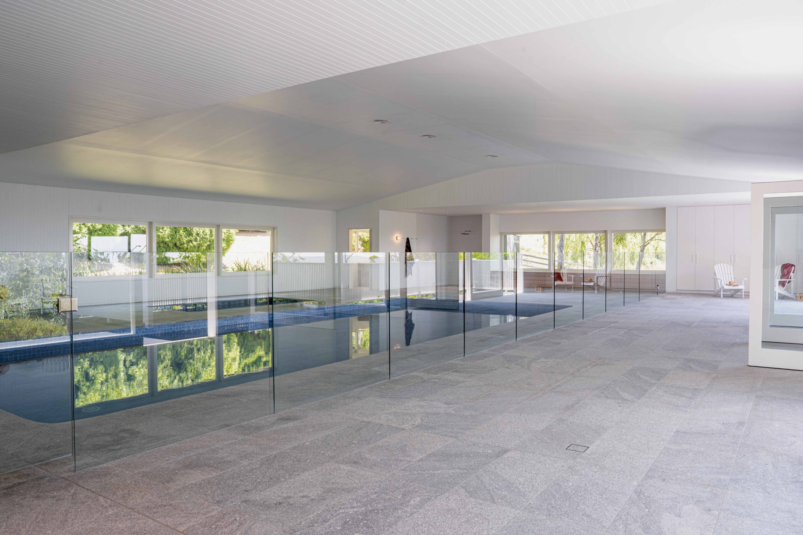 At the Mittagong House project, interior designer Suzanne Green selected Ocean Grey Granite in a flamed finish for the pool house and surrounding areas.